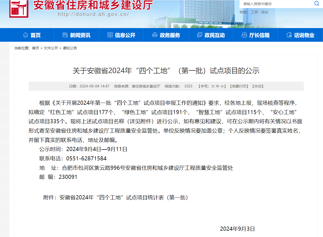 公司項(xiàng)目榮獲安徽省2024年“四個(gè)工地”(第一批)試點(diǎn)項(xiàng)目的綠色工地