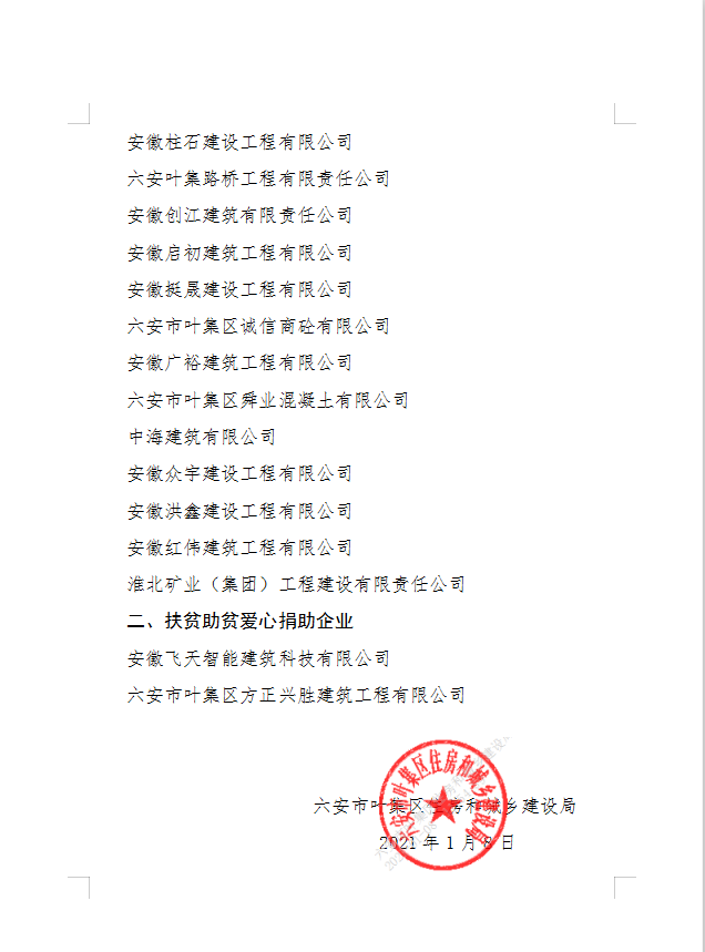 六安市葉集區(qū)關(guān)于2020年表彰疫情防控和扶貧愛心捐款企業(yè)的通知
