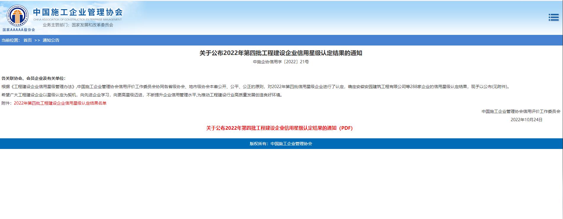 2022年第四批工程建設(shè)企業(yè)信用星級認(rèn)定結(jié)果名單